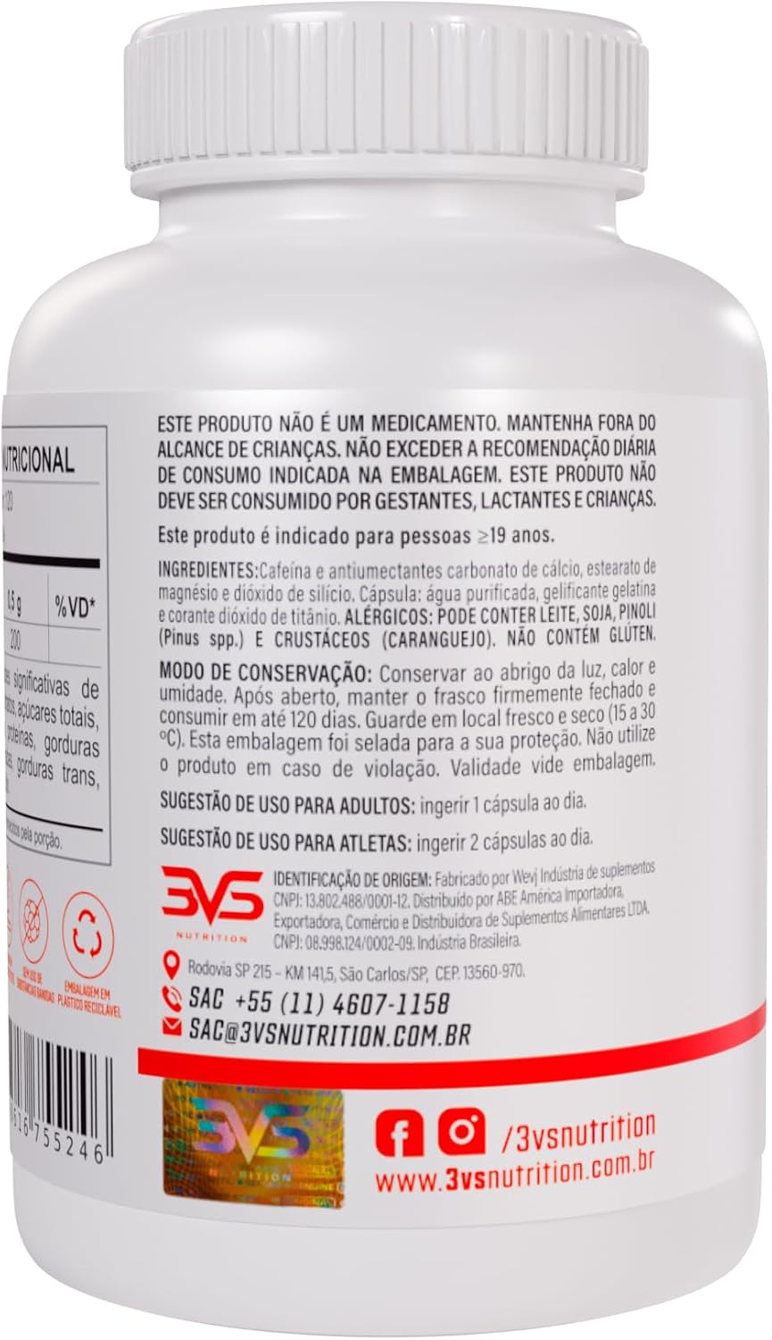 Seja o primeiro a avaliar “3VS Nutrition Cafeína 200mg 120 Cápsulas” Cancelar resposta