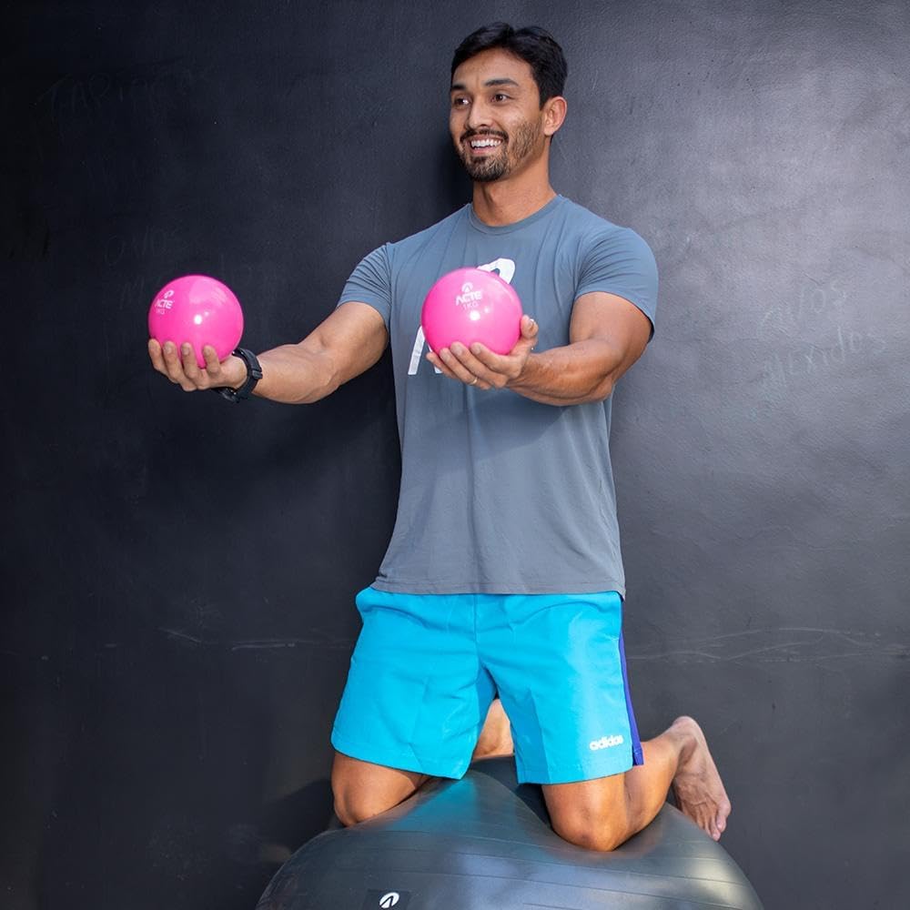Design: Compactas e de fácil transporte, as bolas vêm na cor rosa e são práticas para uso tanto em ambientes internos como externos, podendo ser levadas para parques, academias e sessões de treino ao ar livre. Seu acabamento antiderrapante oferece melhor aderência e segurança.