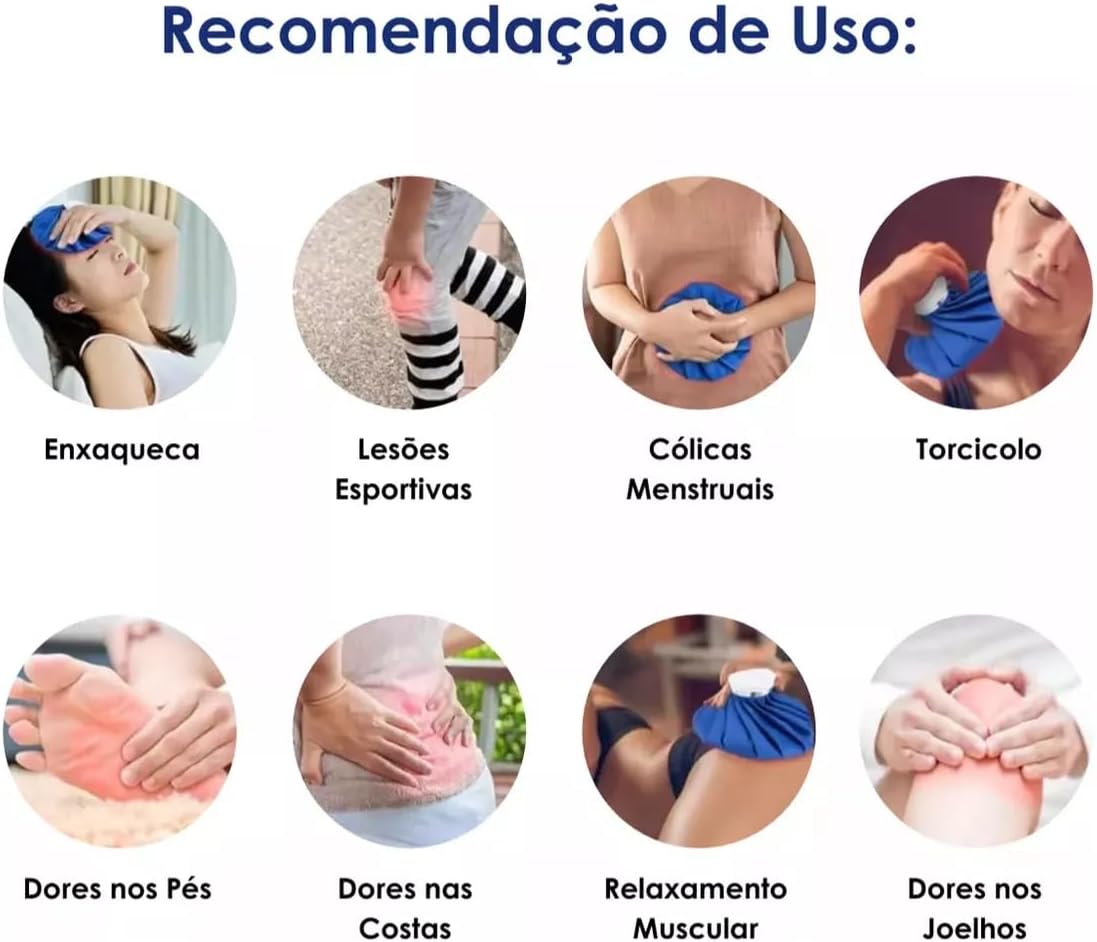 A bolsa térmica pode ser usada com compressas quentes ou frias, oferecendo alívio eficaz para dores, inflamações e lesões, ajudando na recuperação com praticidade e conforto.