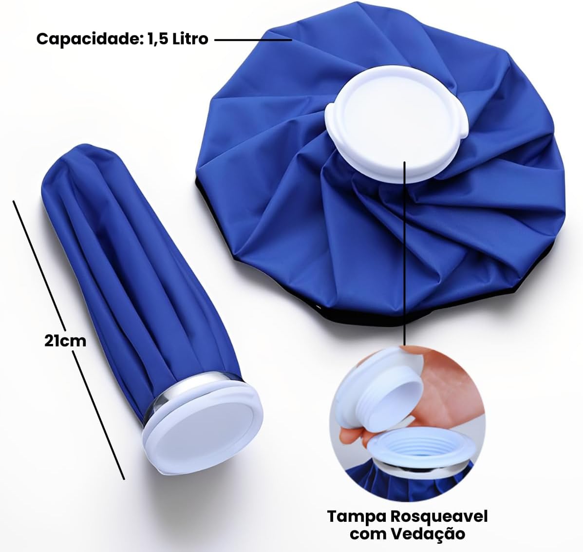 Bolsa de Gelo Térmica Flexível 1,5L – Ideal para compressas quentes e frias, auxilia no alívio de dores musculares, inflamações, contusões, cólicas e lesões.