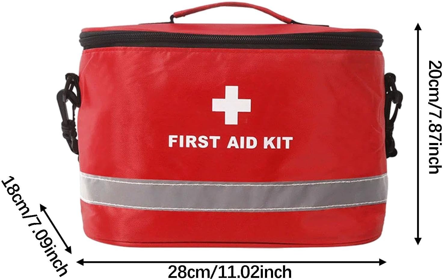【Espaçoso e Portátil】: Bolsa para armazenamento de suprimentos de emergência, mede 28 cm x 18 cm x 20 cm/11,02 polegadas x 7,09 polegadas x 7,87 polegadas, o interior espaçoso oferece amplo espaço para todos os seus itens essenciais de primeiros socorros. A alça confortável e a alça de ombro ajustável facilitam o transporte para onde quer que você vá.