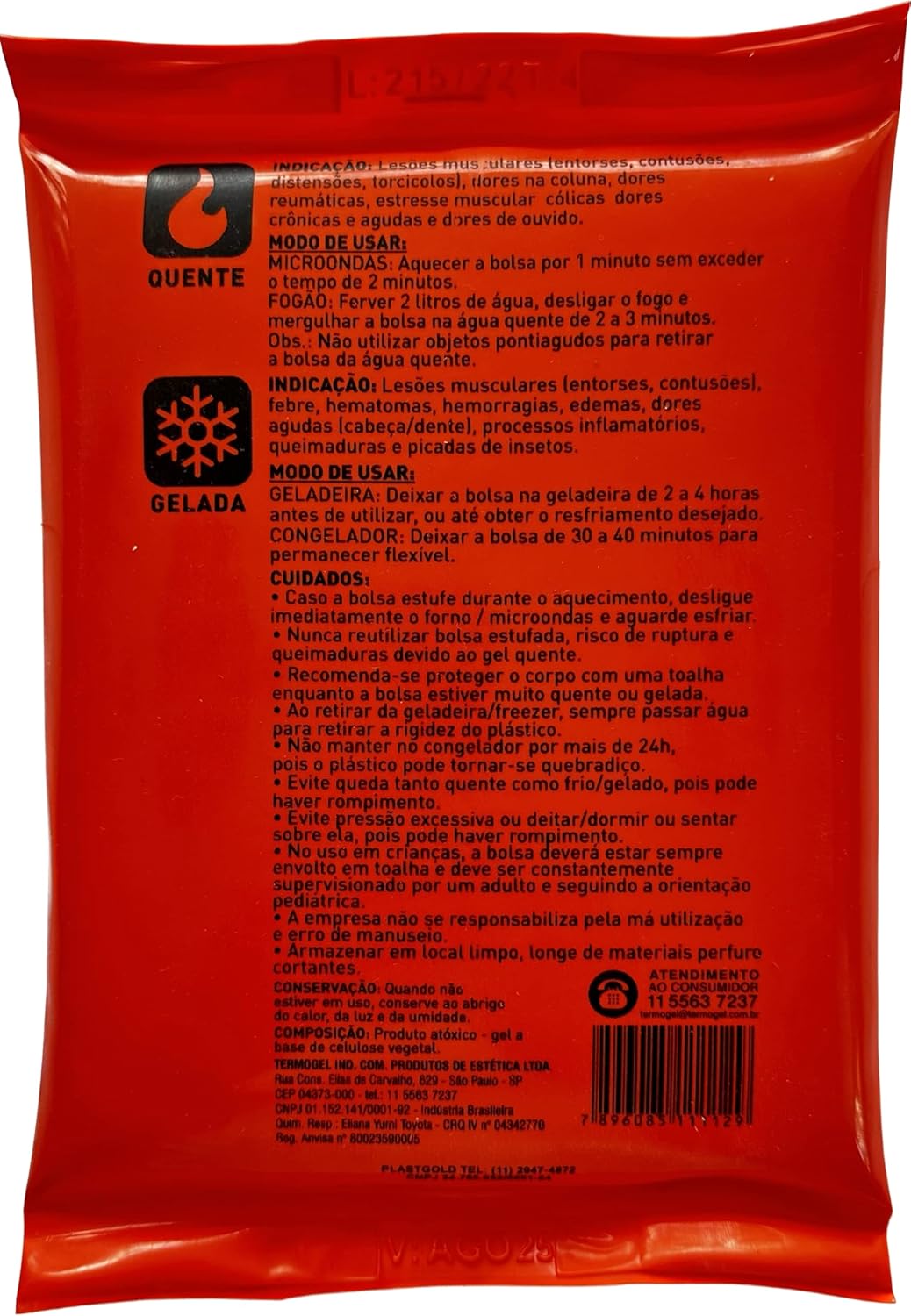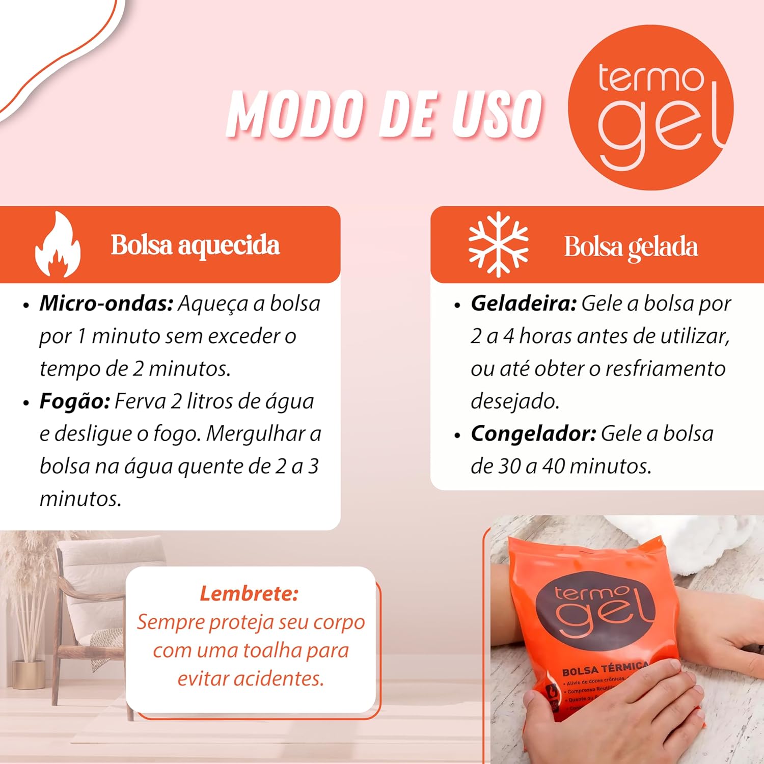 A bolsa térmica, por ser feita em gel, pode ser reutilizada diversas vezes, devendo ser levada ao congelador ou freezer para tratamento crioterápico ou aquecida em banho maria no fogão ou micro ondas