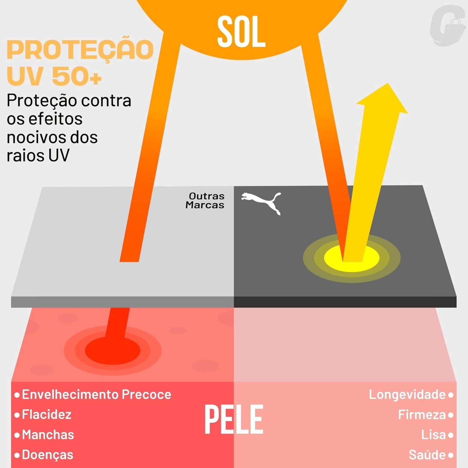 Camiseta Térmica Puma Manga Longa UV50+ Praia Piscina Segunda Pele Adulto Masculina