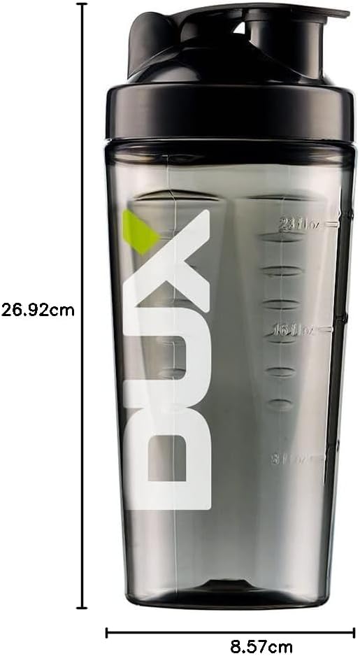Possui capacidade para 800ml, com marcadores laterais para medir a quantidade exata de água no preparo do seu suplemento, livre de bpa, substância nociva à saúde, disponível na cor fumê