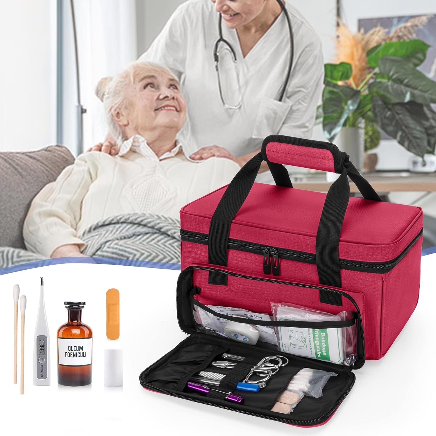 Armazenamento múltiplo: o compartimento frontal contém alguns bolsos e laços elásticos para organizar termômetros, tesouras, seringas, etc. Bolso traseiro para outros itens que você precisa, como manual de primeiros socorros.