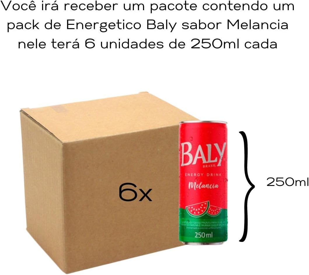 pack com 6 latinhas de 250ml do energetico baly sabor melancia