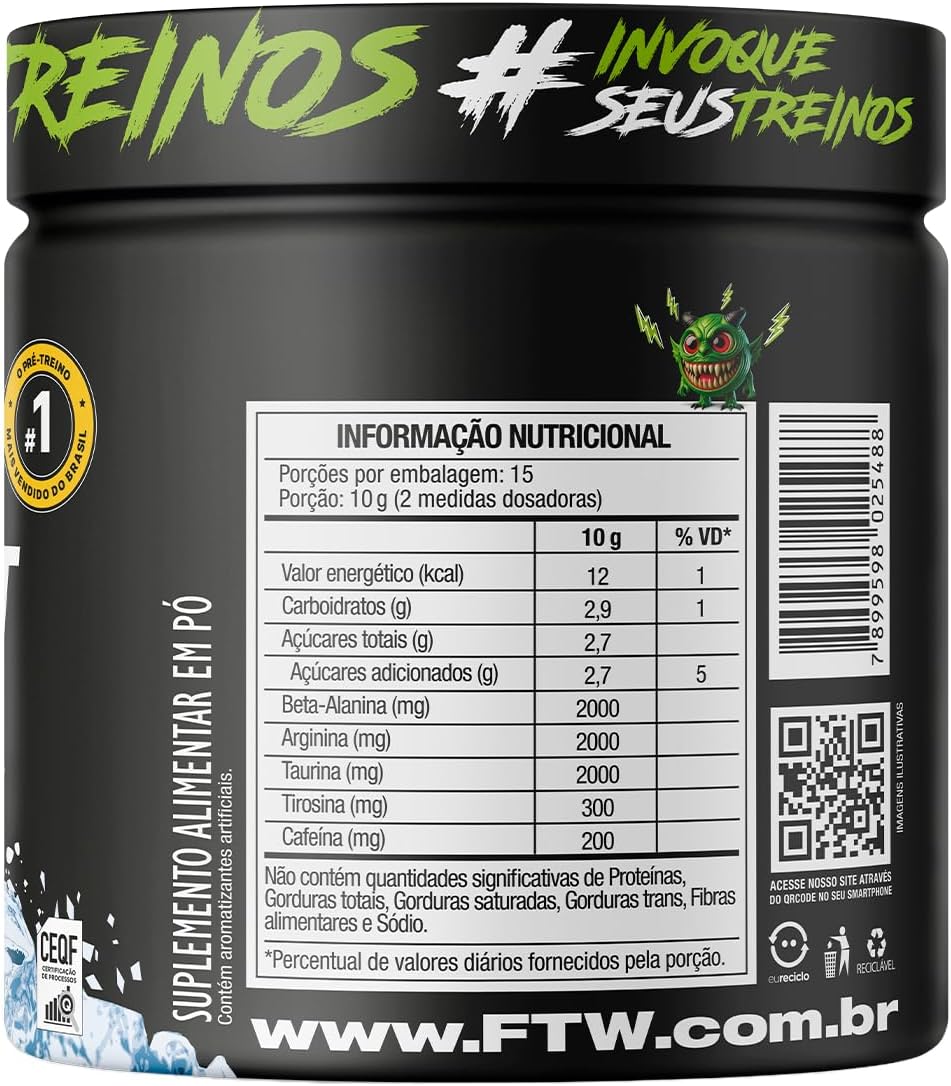 Suplemento de confiança qualidade FTW Nutrition, produzido com ingredientes selecionados e dentro dos padrões da Anvisa.
