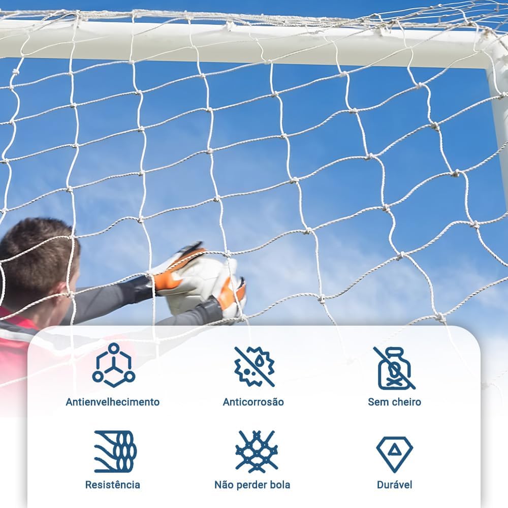 ✍ESTRUTURA DE TECELAGEM FORTE: A rede de futebol é tecida firmemente com fios de poliéster multifilamento de alta densidade, proporcionando uma estrutura robusta que melhora significativamente a resistência ao impacto e à abrasão.