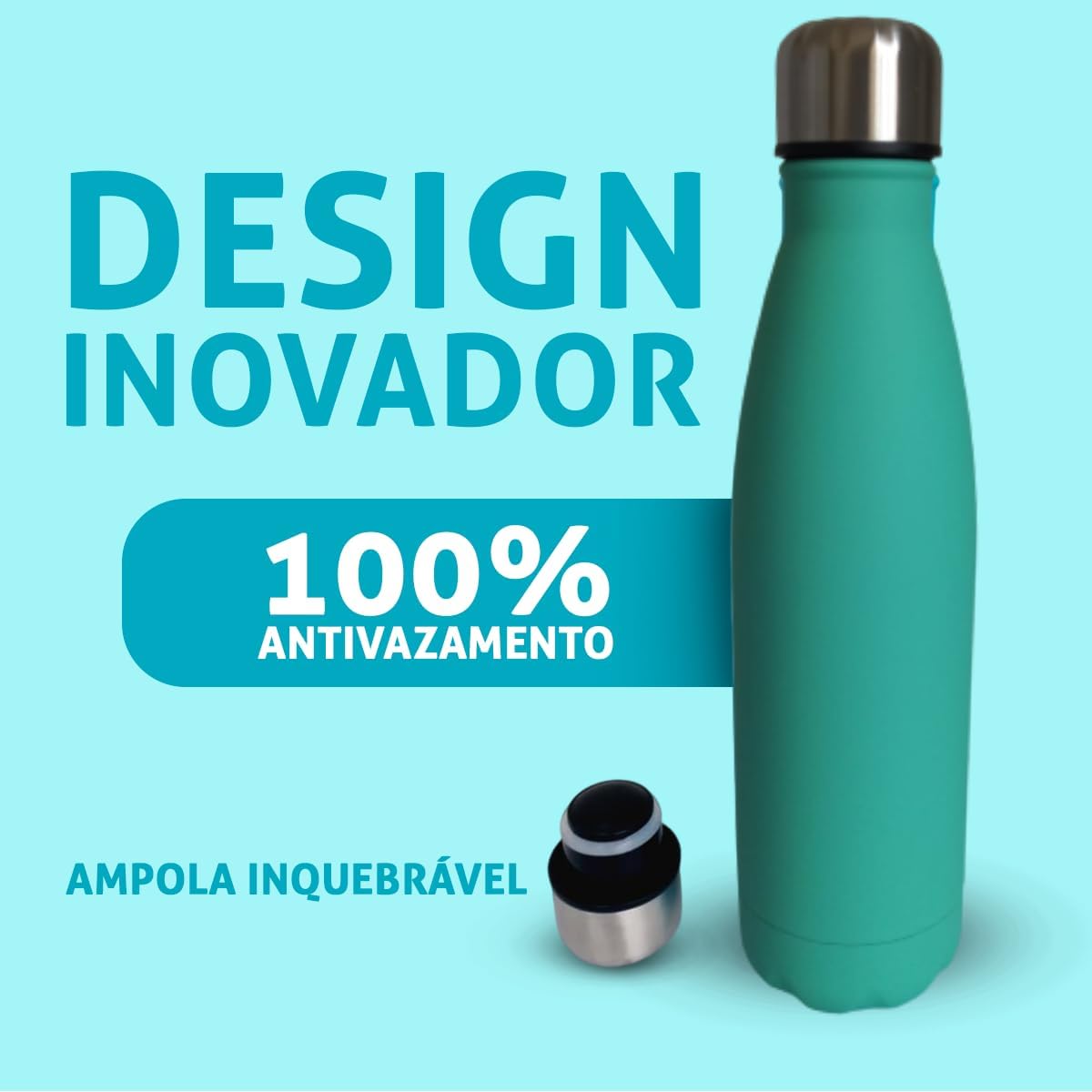 A isolação dupla da parede à vácuo conserva a temperatura do líquido na garrafa, mantendo-os na mesma temperatura por horas