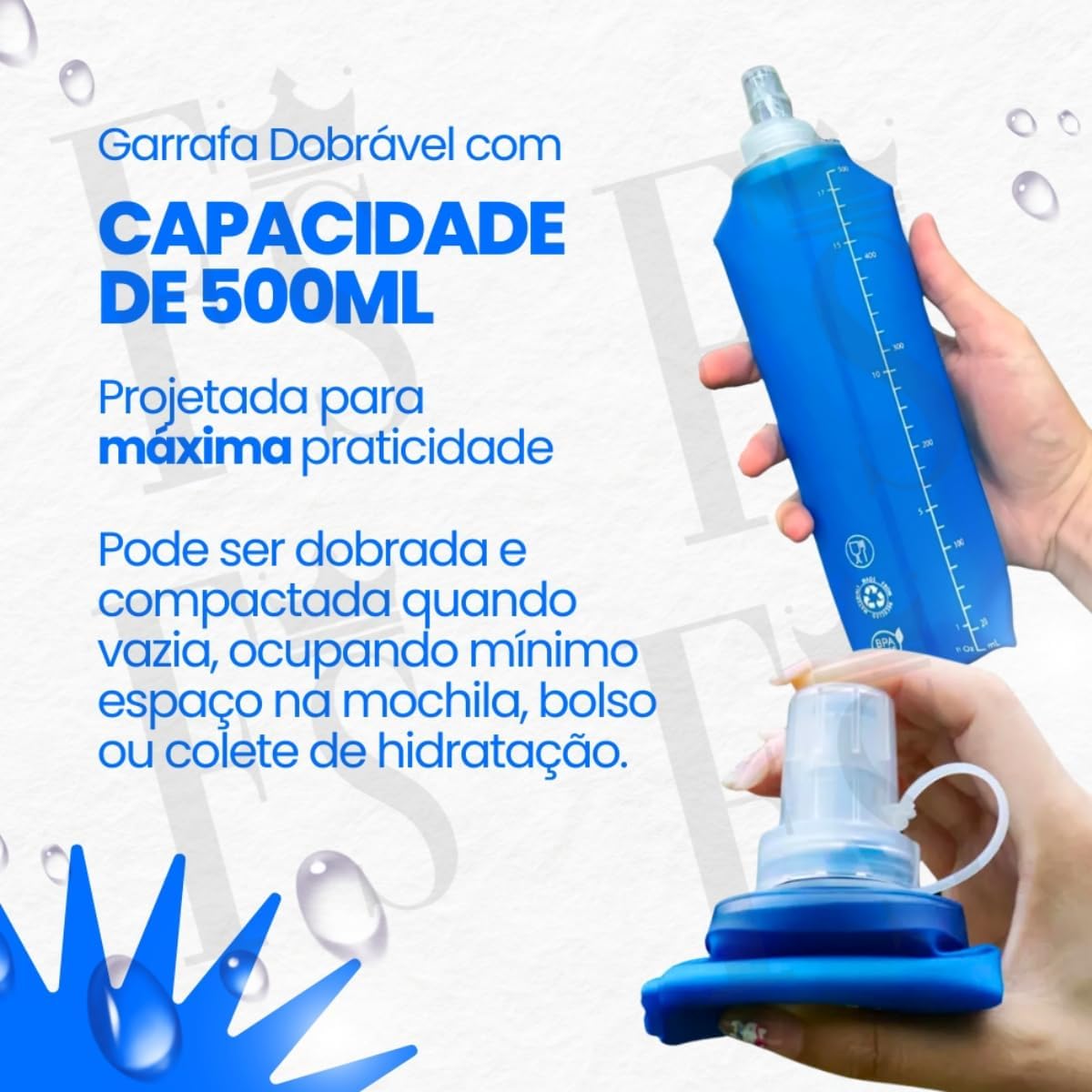 DESIGN ERGONÔMICO: Garrafa dobrável de 500ml com design compacto e ergonômico, ideal para atividades esportivas e uso diário