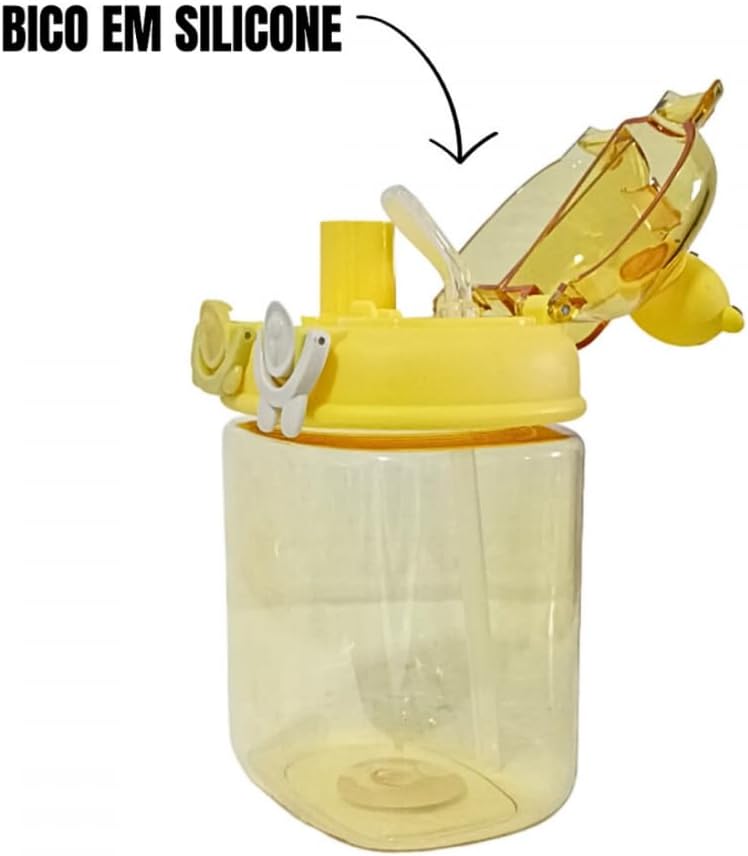 Garrafa Squeeze Infantil 1 Litro com Canudo, Botão e Trava – Praticidade e Diversão para os Pequenos!