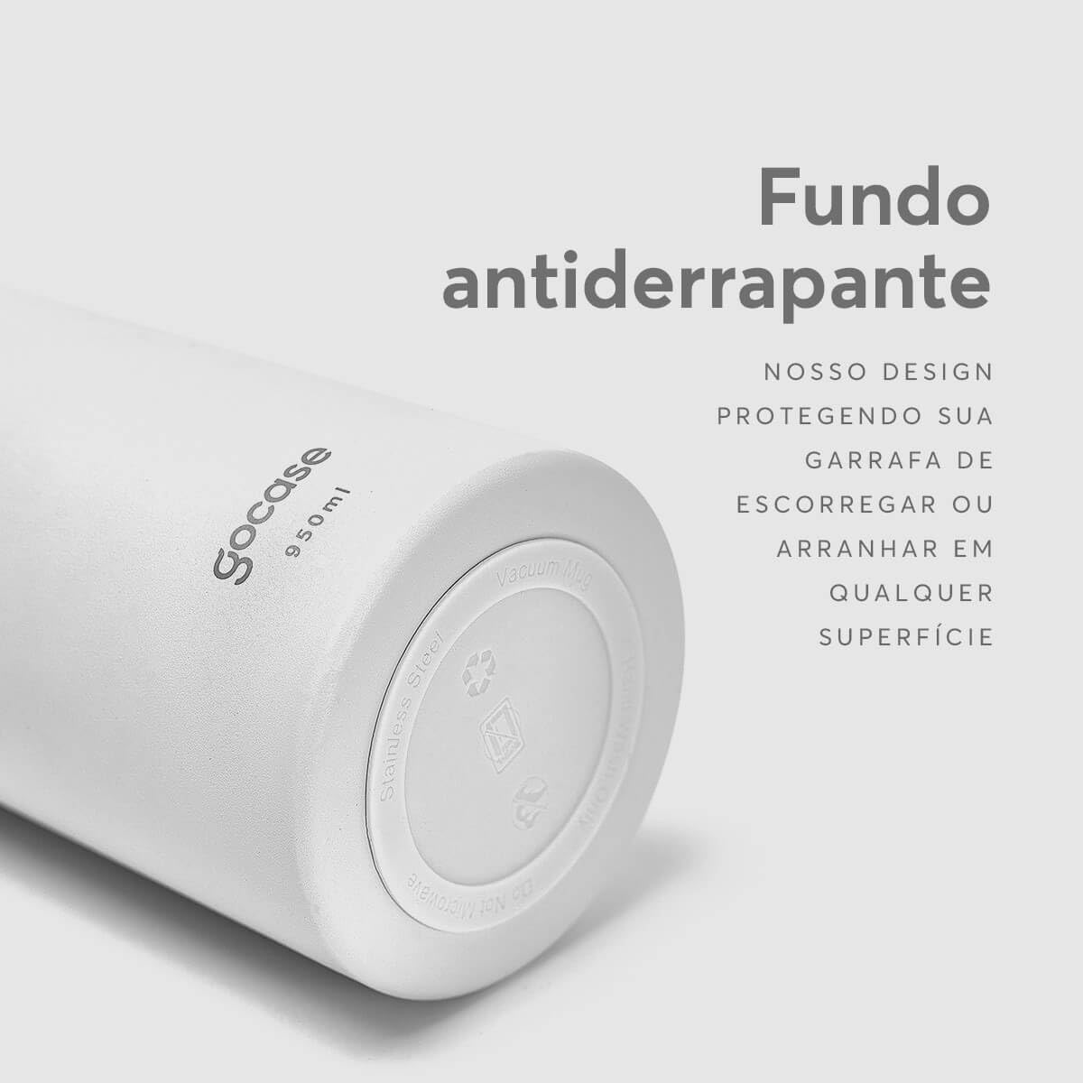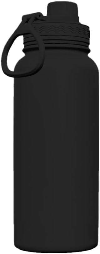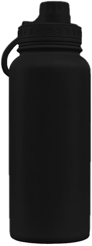 Garrafa térmica preta com capacidade de 950 ml, alça de transporte e base antiderrapante para maior praticidade