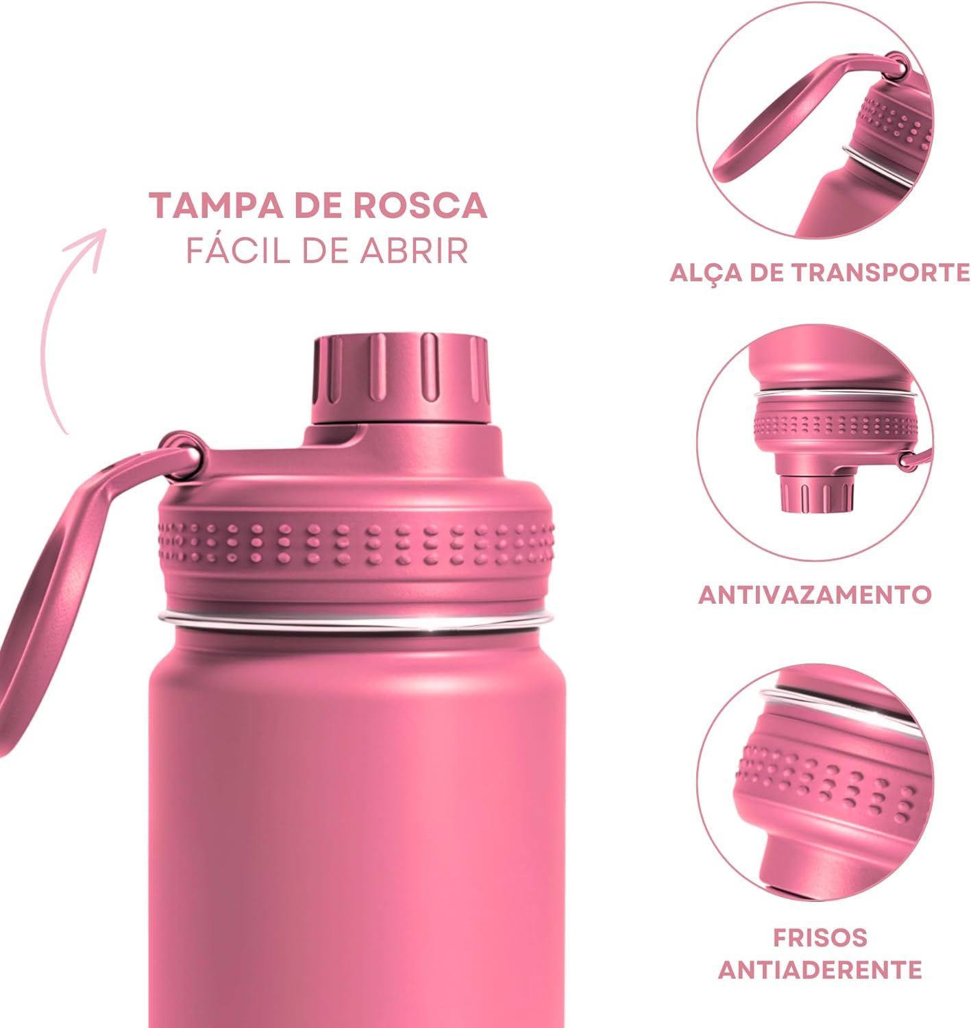 Isolamento térmico poderoso: Mantém líquidos gelados por até 24h e quentes por até 12h, perfeita para todas as estações.