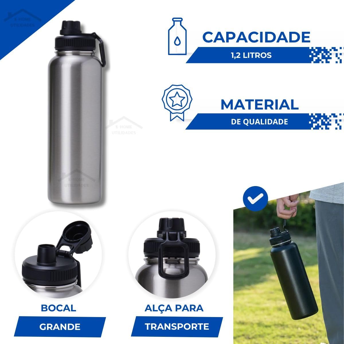 🥤 Capacidade de 1,2 Litros: Perfeita para manter você hidratado durante atividades físicas intensas ou longas caminhadas ao ar livre. Ideal para qualquer aventura e uso diário sem preocupações!