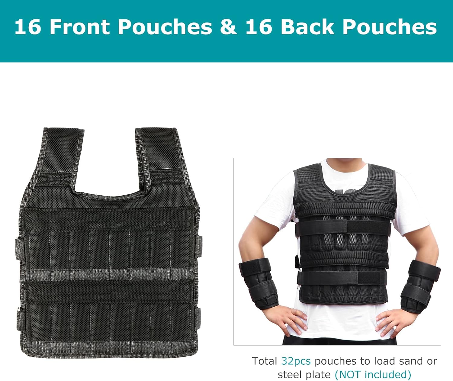 Total de 32 bolsas para carga de peso ajustável, conveniente para carregar areia ou placa de aço (não incluída).