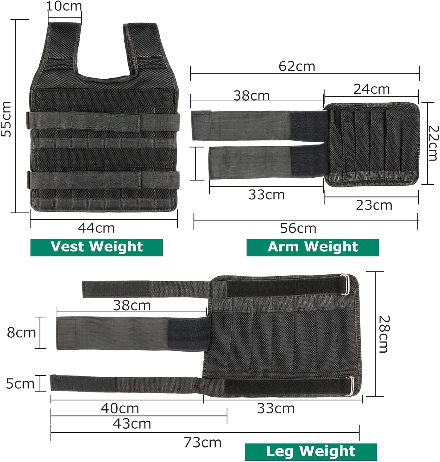O conjunto de carregamento de peso é perfeito para treinamento com pesos, construção muscular e perda de peso, o que aumenta a intensidade e a eficiência do seu exercício. Especificações: Material: malha Cor: Preto Tamanho: 15 kg/35 kg (opcional) Tamanho do item com peso do colete: 55 * 44 cm / 21,7 * 17,3 pol. Peso do item: 365 g / 12,9 oz Tamanho do pacote: 37 * 32 cm / 14,6 * 12,6 pol. Tamanho do item ponderado na perna: 73 * 28 cm / 28,7 * 11 pol. Peso do item: 345 g / 12,2 oz Tamanho do pacote: 28 * 20 cm / 11 * 7,9 pol. Tamanho do item ponderado do braço: 62 * 22 cm / 24,4 * 8,7 pol. Peso do item: 196 g / 6,9 oz Tamanho do pacote: 21 * 17 cm / 8,3 * 6,7 pol. Peso total: 906g / 32oz Lista da embalagem: 1 * Colete pesado 2 * 2 pernas pesadas * braço pesado
