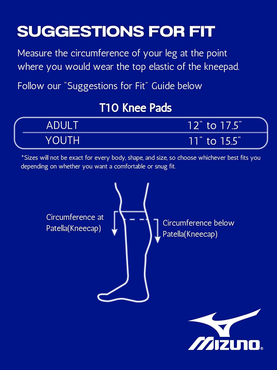 Joelheira de vôlei Mizuno Youth T10 Plus, tamanho único, Preto, Youth OSFM