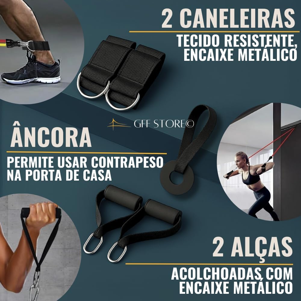Durável e Confortável: Feitos com materiais de alta qualidade, os elásticos são duráveis e confortáveis de usar. As alças acolchoadas proporcionam uma pegada firme e confortável durante os exercícios, garantindo segurança e eficácia em cada movimento