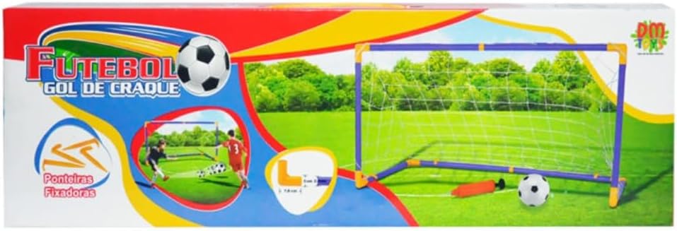 Kit Jogo De Futebol Chute A Gol Com Trave Grande Completo – DM Toys Com o kit futebol, a diversão da criançada estará garantida. Desmontável, o kit fica fácil para carregar e guardar. Indicado para praia e campo, ou até mesmo brincar no quintal de casa. Acompanha: – O2 Traves – 02 Bolas De Plástico – 02 Redes – 08 Ponteiras Fixadoras – 02 Bombas de Ar – Manual Medidas Aproximadas: – Altura: 62 cm – Largura: 118 cm – Profundidade: 62 cm Fornecedor: Dm Toys Referência: Dmt5075 Recomendado Para Maiores De 3 Anos