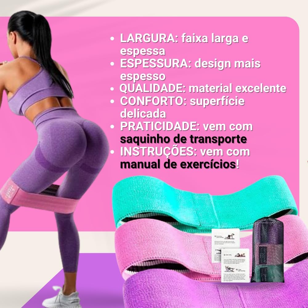 O Kit com 3 Faixas Elásticas de Exercício – Hip Resistance Bands é o aliado ideal para quem busca força, definição muscular e mobilidade sem abrir mão da praticidade, conforto e segurança.