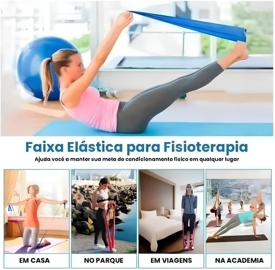 Dimensões Perfeitas – Cada faixa mede 1,5 m de comprimento e 15 cm de largura, oferecendo a resistência ideal para os exercícios.