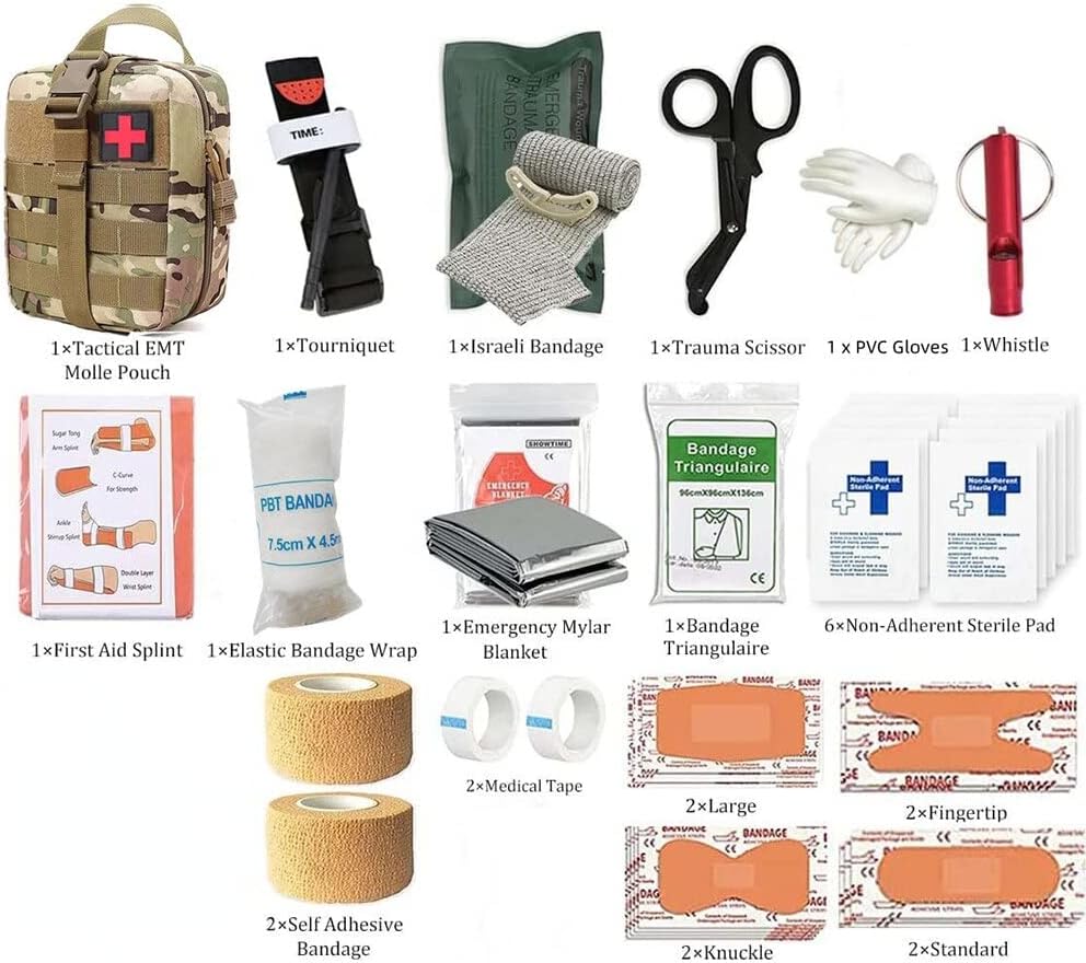 Kit de primeiros socorros de sobrevivência IFAK EMT Molle com kit de torniquete, kits de emergência ao ar livre bolsa de trauma para acampamento, barco, caça, caminhadas, casa, carro e aventuras