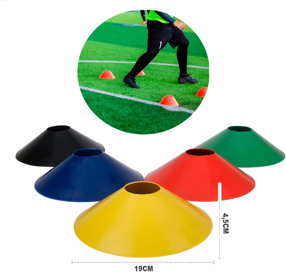 * É indicado para todas as modalidades esportivas. Acessórios para demarcação de espaços e oferece regularidade nos exercícios. Extremamente leves, são de fáceis higienização e também muito fácil de carregar.