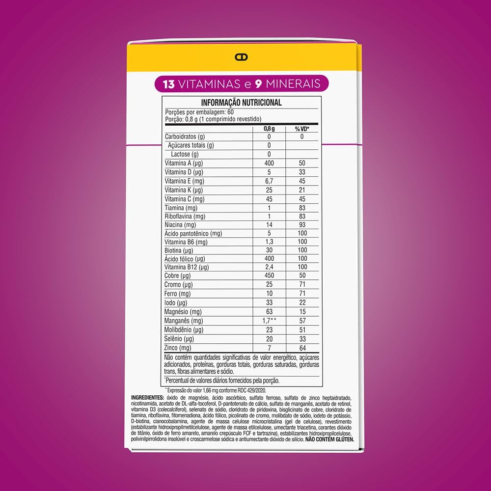 13 vitaminas e 9 minerais de A a Z