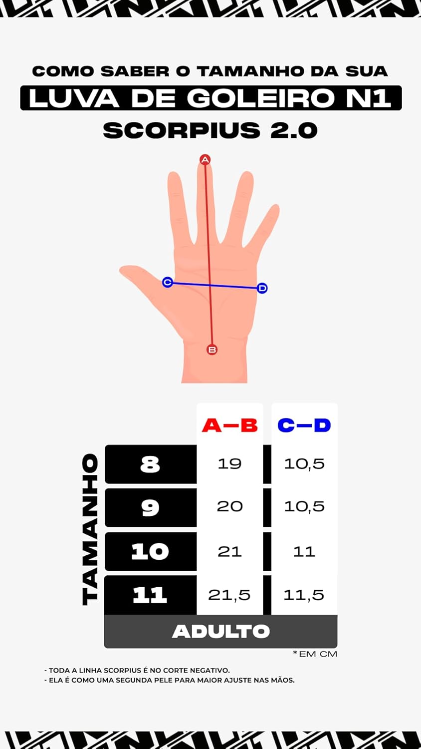 A N1 Scorpius 2.0 é uma luva de goleiro profissional que combina leveza, ajuste preciso e alta tecnologia. Com corte negativo e palma em látex 100% alemão SSG, oferece excelente aderência em todas as condições de jogo. Ideal para goleiros que buscam desempenho de elite, essa luva proporciona sensação de segunda pele graças ao seu design ergonômico e à tecnologia GEL FIT, que melhora o controle e a segurança nos contatos com a bola. Seu dorso é flexível e ventilado, garantindo conforto durante partidas intensas. O fecho ajustável e os reforços nas áreas de impacto oferecem proteção adicional e estabilidade no pulso. Durável e eficiente, a Scorpius 2.0 é indicada para goleiros profissionais e exigentes que não abrem mão de qualidade, desempenho e estilo em campo.