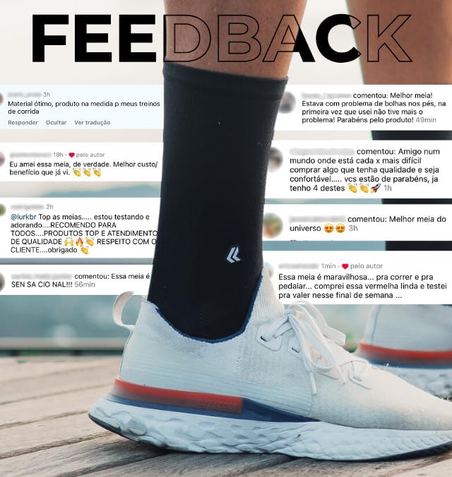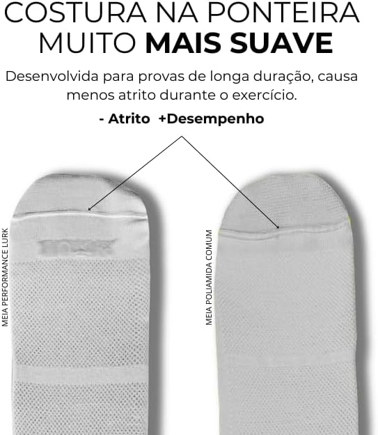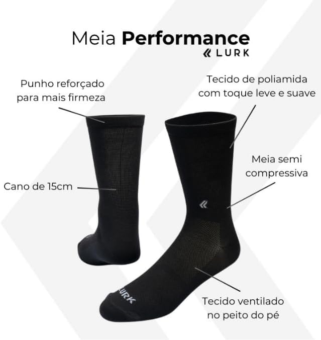 Cano Médio: Aproximadamente 15 cm de altura (até o meio da canela). Tamanhos disponíveis: 32-36 | 37-42 | 43-48 (Unissex). Composição: 79% Poliamida | 14% Poliéster | 07% Outras fibras Diferenciais: Tecido ventilado no peito do pé | Semi-compressão. Todas as nossas meias estão disponíveis para pronta entrega em nosso estoque físico, localizado em São José (SC). Modelos disponíveis: Meia Performance Desenvolvida com tecido à base de poliamida, a Meia Performance é semi-compressiva e conta com ventilação na parte superior do pé. O cano possui aproximadamente 15 cm e oferece compressão moderada, tornando-se ideal para treinos de corrida (running) e ciclismo. Não é recomendada para treinos de CrossFit, pois pode escorregar dentro do tênis. Meia Superfresh Com tecido à base de poliamida, a Meia Superfresh é semi-compressiva e possui anéis de ventilação em todo o pé (superior e inferior), além de contar com uma faixa refletiva na parte traseira (disponível apenas no modelo de cano médio). Graças à ventilação extra, proporciona a sensação de ser ainda mais fina. É recomendada para corrida e ciclismo, mas também pode ser utilizada no CrossFit, pois oferece bom grip. Meia Esportiva Com maior quantidade de ALGODÃO em sua composição, a Meia Esportiva proporciona mais conforto para o dia a dia e um excelente grip para treinos de CrossFit e musculação. Meia Active Lurk A Meia Active Lurk possui cano curto e conta com proteção extra no calcanhar, garantindo mais conforto e segurança. Versátil, pode ser usada tanto no dia a dia quanto para a prática de qualquer esporte.