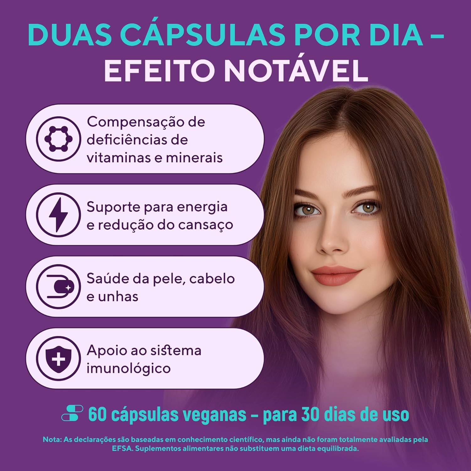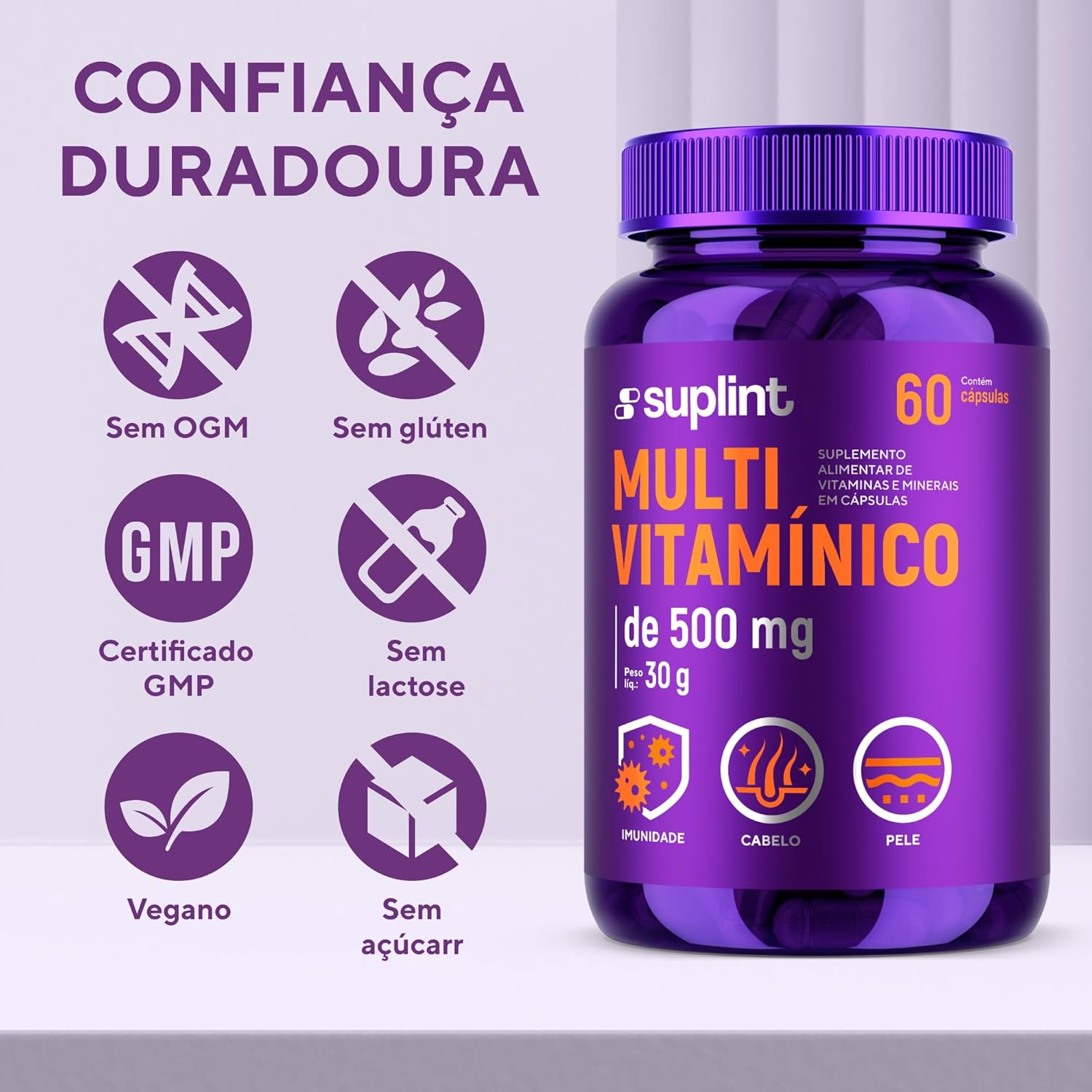 ✔ FÓRMULA VEGANA – Sem ingredientes de origem animal, livre de glúten e não transgênico.