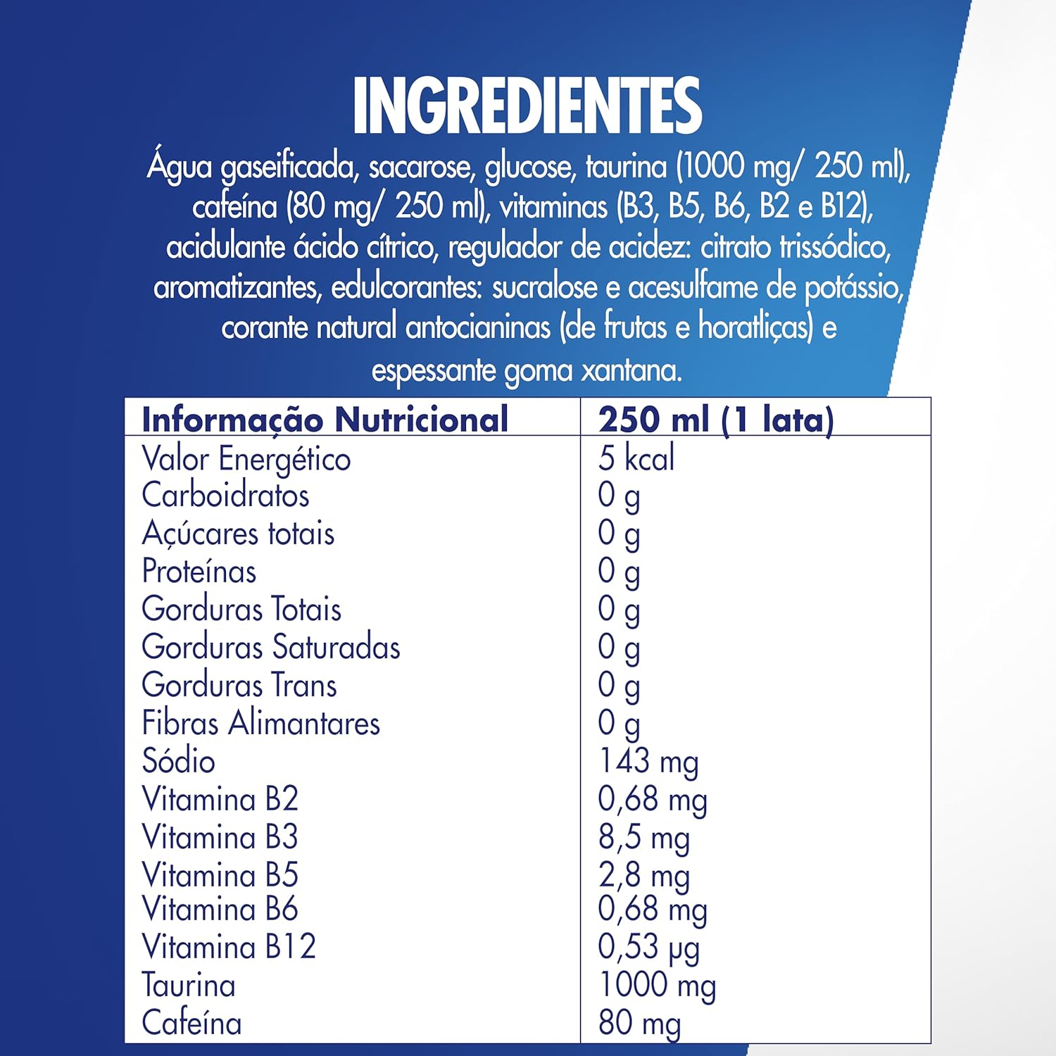 Uma lata de 250 ml de Red Bull energy drink contém 80 mg de cafeína, aproximadamente a mesma quantidade de uma xícara de café