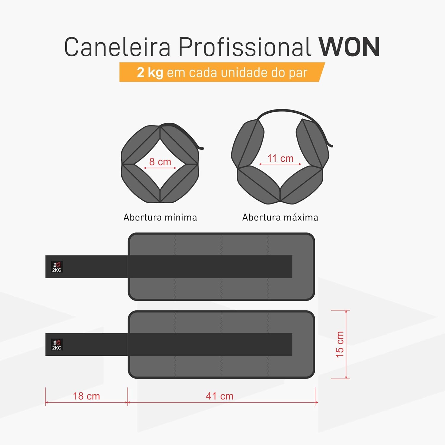 Caneleiras Tornozeleiras de Peso Profissional – 2 kg (Cada Unidade) – Intensifique seus treinos com a Caneleira Profissional WON! Desenhadas para quem busca resultados rápidos e eficazes, as Caneleiras Tornozeleiras de Peso Profissional são ideais para fortalecer e tonificar tanto membros inferiores quanto superiores. Perfeitas para quem está comprometido com o aumento de performance e resistência. – Por que escolher a Caneleira Profissional WON? ✔️ Ajuste perfeito – Sistema de velcro fácil de ajustar, proporcionando conforto e estabilidade durante os exercícios. ✔️ Alta durabilidade – Fabricadas com 75% PVC e 25% poliéster, garantindo longa vida útil e resistência ao desgaste. ✔️ Ideal para treinos intensivos – Aumente a carga durante exercícios de resistência, caminhadas, corridas, pilates e muito mais. ✔️ Peso ideal para treinos intensivos – 2 kg por unidade (4 kg o par), ideal para quem quer aumentar a resistência e força muscular rapidamente. – Especificações Técnicas: – Peso: 2 kg por unidade (4 kg o par) – Material: 75% PVC / 25% Poliéster – Ajuste: Velcro ajustável para maior conforto – Ideal para: Fortalecimento muscular, resistência, caminhada, corrida, pilates e mais. – Cuidados com o produto: – Limpeza fácil com pano úmido – Evitar o uso de produtos abrasivos para preser a durabilidade do material – Guardar em local seco e arejado para prolongar a vida útil.
