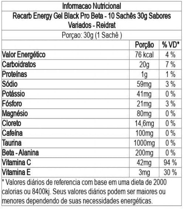 Carboidrato em Gel com TAURINA, CAFEÍNA E BETA ALANINA;