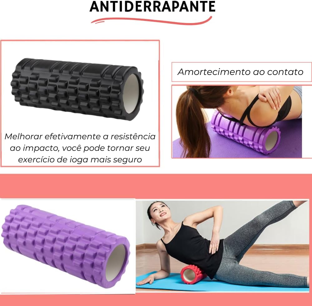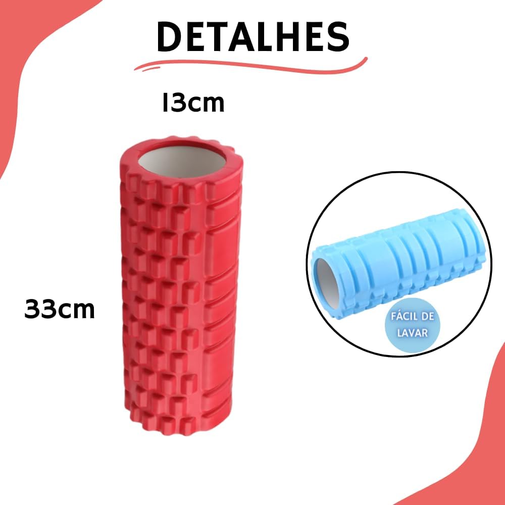 Rolo de Massagem EVA Foam Roller Liberação Miofascial Yoga Alongamento Premium Rubber Fit