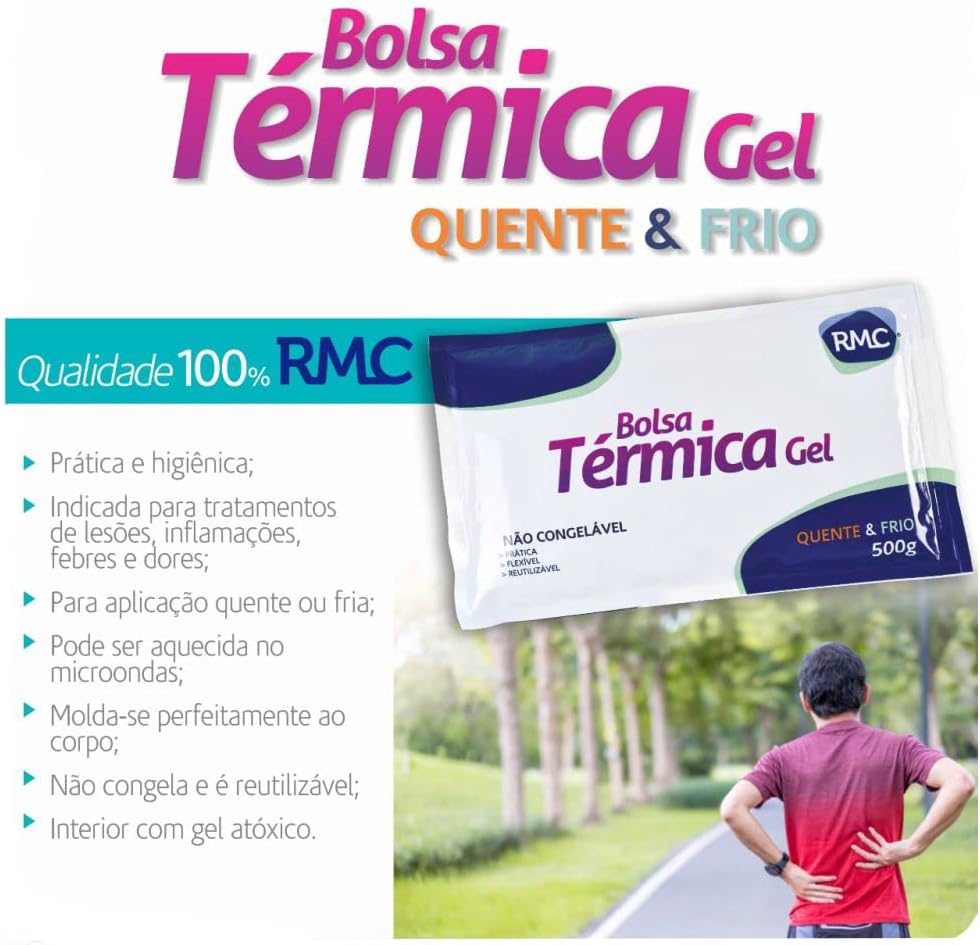 Descrição: A Bolsa Compressa Térmica Gel Quente e Frio Kit Thermall RMC é um produto indispensável para quem busca conforto e alívio em momentos de dor. Com capacidade de 5L, esta bolsa é versátil e fácil de usar, podendo ser aquecida ou resfriada de acordo com a sua necessidade. Eficiente em terapias quentes e frias. A Bolsa Térmica é flexível. (26 x 15 cm) A Capa protege a pele do local tratado. O Kit Thermall é higienizável e pode ser lavado após o uso. É composto por 1 bolsa térmica, 1 capa protetora (26 x 15 cm) e 1 cinta ajustável.