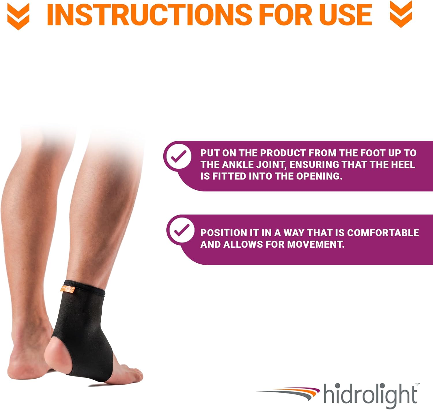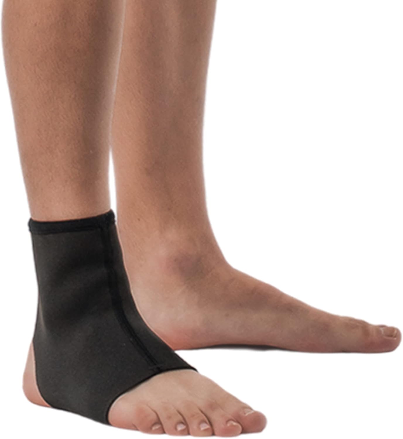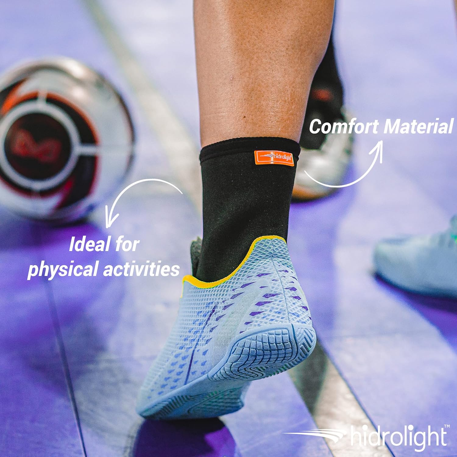 Compressão na região do tornozelo; Melhora a sensação de estabilidade da articulação; Retém o calor devido ao material em neoprene; Auxilia no alívio da dor.
