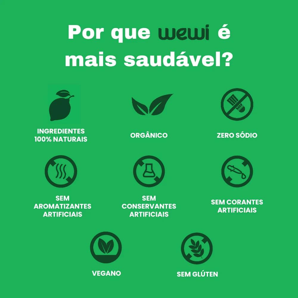 INGREDIENTES 100% NATURAIS: Descubra o verdadeiro sabor que só os ingredientes de verdade podem oferecer! O Energético da Wewi é feito com ingredientes 100% naturais, garantindo a melhor experiência em cada gole.