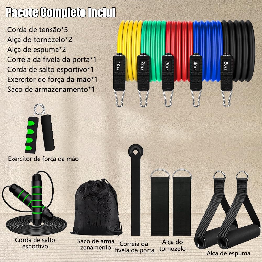 Resistência Avançada – As cordas de resistência são diferenciadas por cinco cores para diferentes níveis de treinamento de 10 a 50 libras, ajudando você a fortalecer seus braços, pernas, quadris e outras partes de maneira direcionada, aumentar efetivamente os músculos e modelar seu corpo, além de iniciar facilmente o treinamento de força científico.